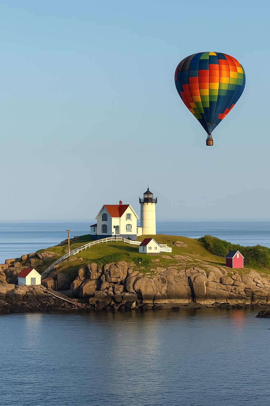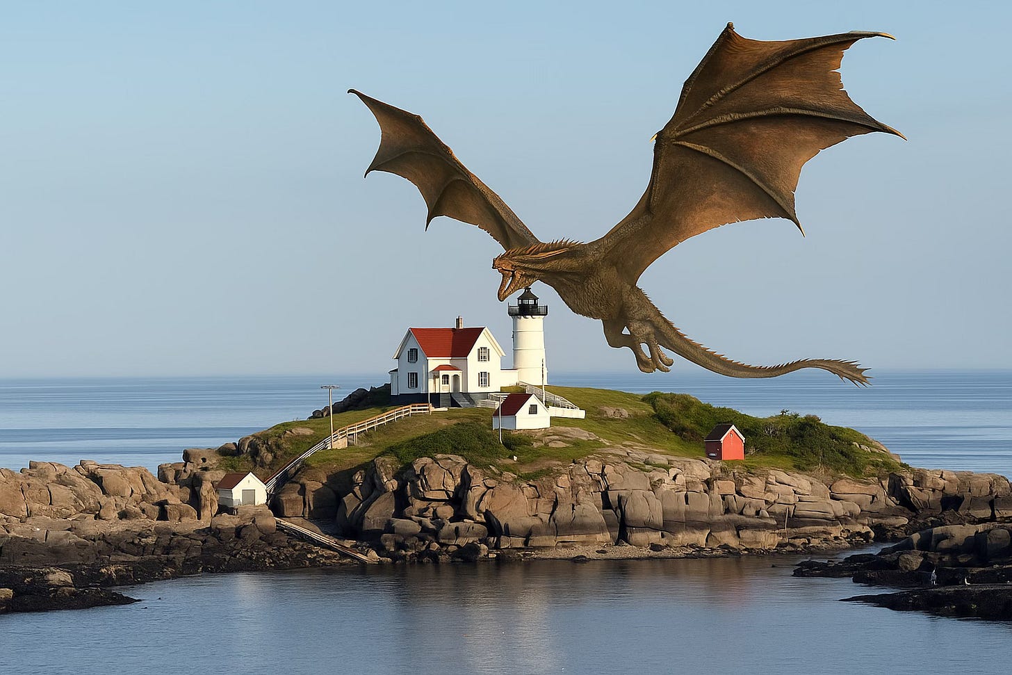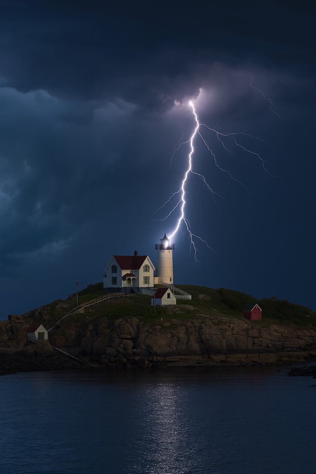 You can take an existing photo and then add interesting new elements to it. In this example, I took this photo of Nubble Lighthouse.