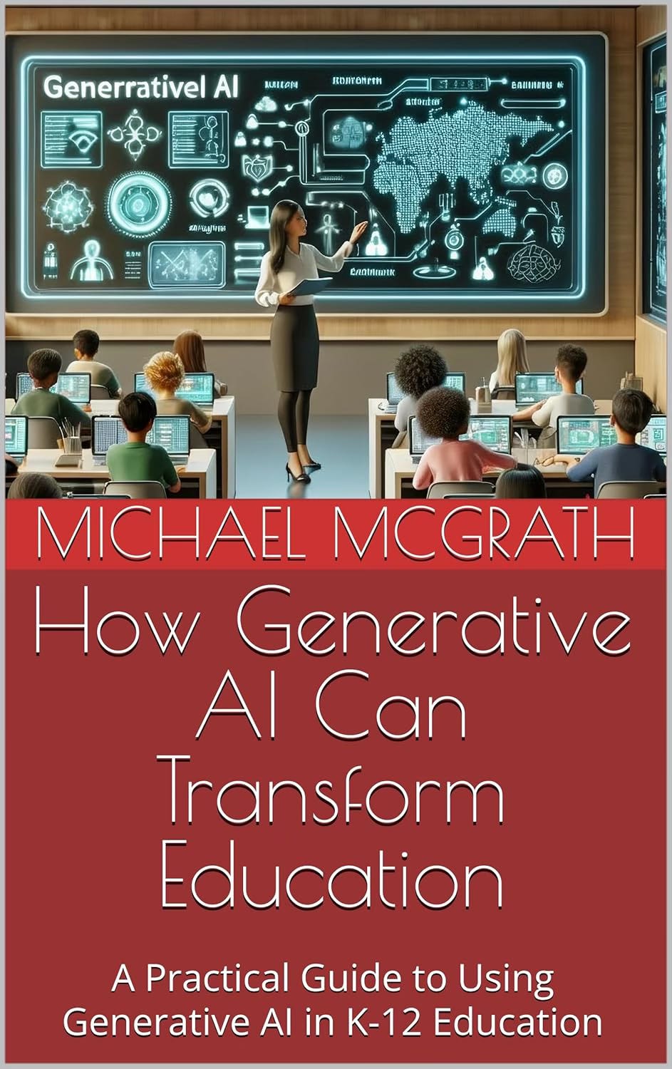 The image of the futuristic classroom at the top of the book cover was created by Shutterstock’s generative AI based on descriptions of what I wanted. It took 5-6 iterations to achieve the desired image.